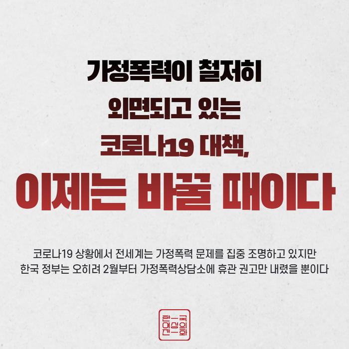 10. Äڷγª19 »óȲ¿¡¼ Àü¼¼°è´Â °¡Á¤Æø·Â ¹®Á¦¸¦ ÁýÁß Á¶¸íÇϰí ÀÖÁö¸¸ Çѱ¹ Á¤ºÎ´Â ¿ÀÈ÷·Á 2¿ùºÎÅÍ °¡Á¤Æø·Â»ó´ã¼Ò¿¡ ÈÞ°ü ±Ç°í¸¸ ³»·ÈÀ» »ÓÀÌ´Ù.