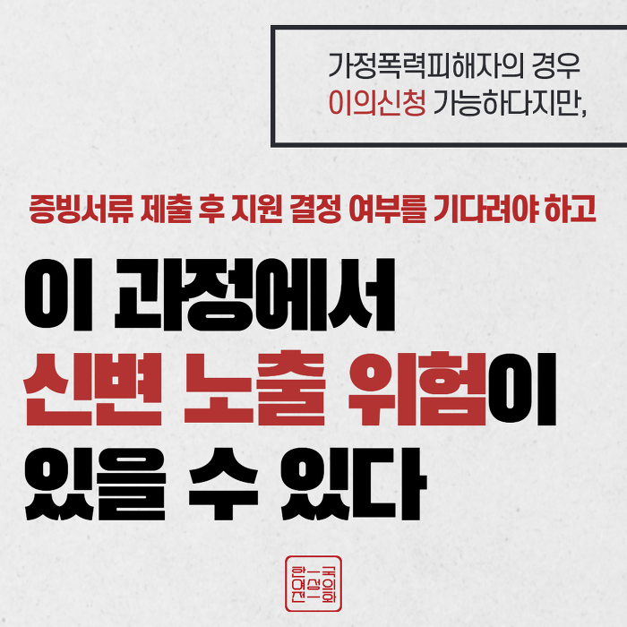 5. °¡Á¤Æø·ÂÇÇÇØÀÚÀÇ °æ¿ì ÀÌÀǽÅû °¡´ÉÇÏ´ÙÁö¸¸, Áõºù¼·ù Á¦Ãâ ÈÄ Áö¿ø °áÁ¤ ¿©ºÎ¸¦ ±â´Ù·Á¾ß Çϰí ÀÌ °úÁ¤¿¡¼ ½Åº¯ ³ëÃâ À§ÇèÀÌ ÀÖÀ» ¼ö ÀÖ´Ù.
